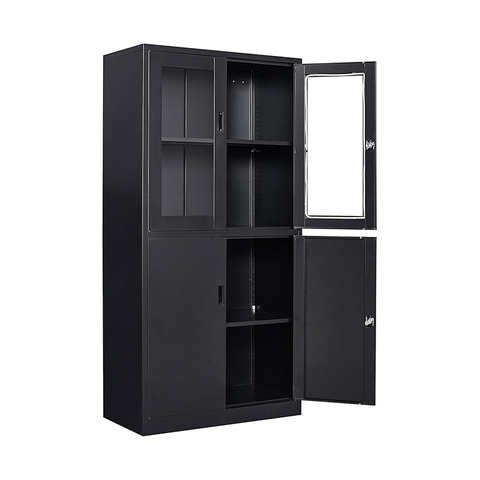 Armadietto per archiviazione in acciaio ad alta sicurezza 4 porte in vetro temperato bianco e nero serratura centrale per negozi a casa uffici